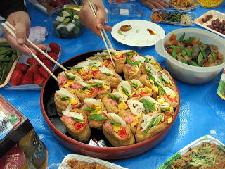千葉職対連お花見会(佐倉城址公園) Tさん手作りの「いなり寿司」