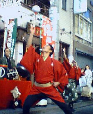 全く予期しなかったのは、門前で曲芸が始まったことだった。三味線・太鼓の音にあわせて、番傘の上で金輪を転がす(金回りが良くなる)、茶碗、土瓶を使って次々と技を見せてくれた。最後は30p位の棒の上に水を入れた茶碗を乗せ、それを廻すと噴水のように綺麗に水が外へ飛び散った。おまけにどこに仕掛けてあったのか、紙吹雪までが舞った。目の前で天ぷらを揚げてくれる格安な定食を食べてから、日比谷に出て映画まで見た。