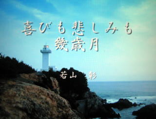 木下忠司は400曲以上の映画主題歌を作りましたが、とくに多いのが、実兄の映画監督・木下恵介の作品につけた曲です。 この歌は、若山彰の迫力のある歌唱と相まって大ヒットしました。 昭和32年(1957)に制作された『喜びも悲しみも幾年月』は、実在の灯台守の妻・田中キヨの手記に基づいて作られたものです。灯台守の夫婦を佐田啓二と高峰秀子が演じました。 夫婦は、昭和7年(1932)の神奈川県観音崎灯台から始まって、北海道から九州まで各地の灯台を転勤して回ります。その間に家族が味わった哀歓や同僚たちとの交流がテーマになっています。