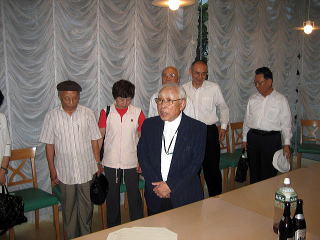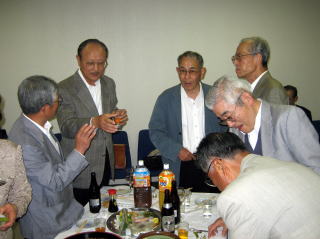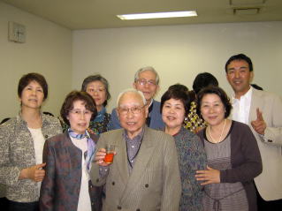 ![]() 天野先生を囲んでA 左から:伊原・辻・天野先生・山下・井上・ 北野・糸井・秋山 |